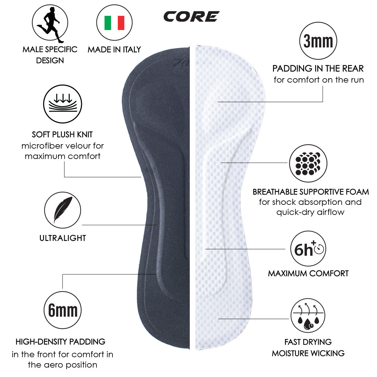 ■ 義大利 TMF 柔軟立體褲墊 – 在騎乘時提供針對性支撐,同時在游泳與跑步中保持舒適與俐落感